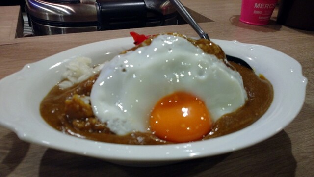 底だけ焼いた半生目玉焼きを混ぜてマイルドに