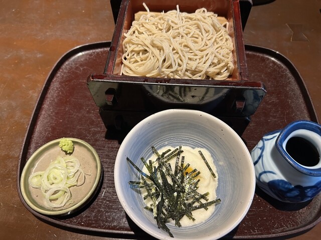 今日は夜はガッツリ食べるので、とろろせいろ1400円、国産大和芋・うずら卵落としを注文しました。