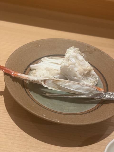 はじめはアテがしばらく出てから、鮨がはじまります。アテの数もお客さんによって変えてくれます、私たちはアテ多めで、季節のカニも出していただきました。