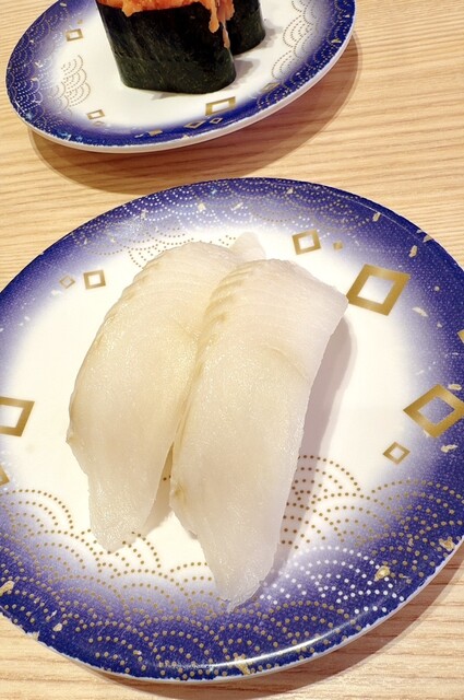 お昼時だったけれど悪天候もありお客様は9割くらい。私達はテーブル席に通されました。ここはテーブル席が多めで、カウンター席少なめ。新しいというのもあり、店内とても明るく清潔で、回転寿司にしては珍しく空間も広い感じ。気持ち良い空気が流れていました。