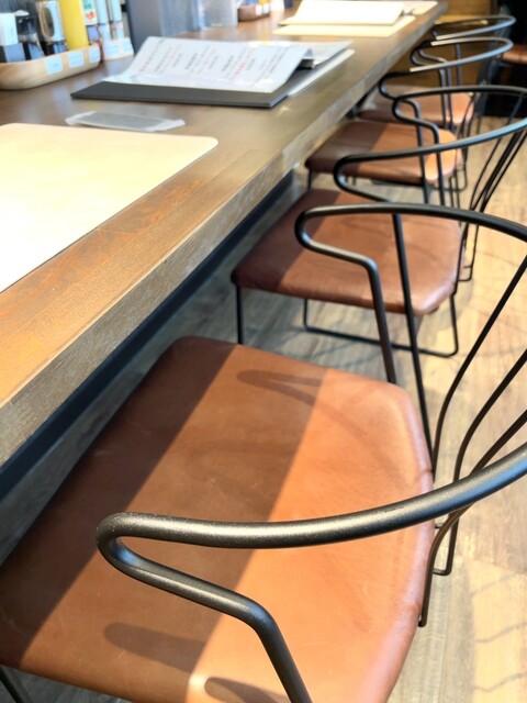 店内は、カウンター5席、2人がけテーブル2卓、4人がけテーブル1卓です。