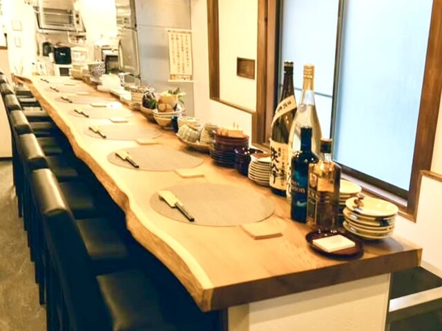 古民家リノベーションの店内は、カウンター10席(7席+3席)の落ち着いた雰囲気です。