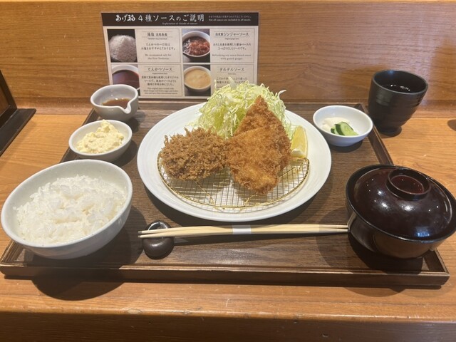 今日は近くで仕事予定だったので迷わずあげ福さんへ。13時過ぎていたこともあって待たずに入店できましたがそれでも席はほぼうまっていました。注文したのは大好きなチキンカツとメンチカツがついたチキンカツコンボ1900円。チキンカツ口の中でとけます笑。それくらい柔らかくて本当に美味しいです。メンチカツはひと口目は何もつけずに肉汁を味わって、その後ソースをつけて食べてこれもまた美味しい。ご飯もすごく美味しくておかわり(無料)。キャベツは高騰していることもあってかおかわりできなくなっていたのが少し残念。