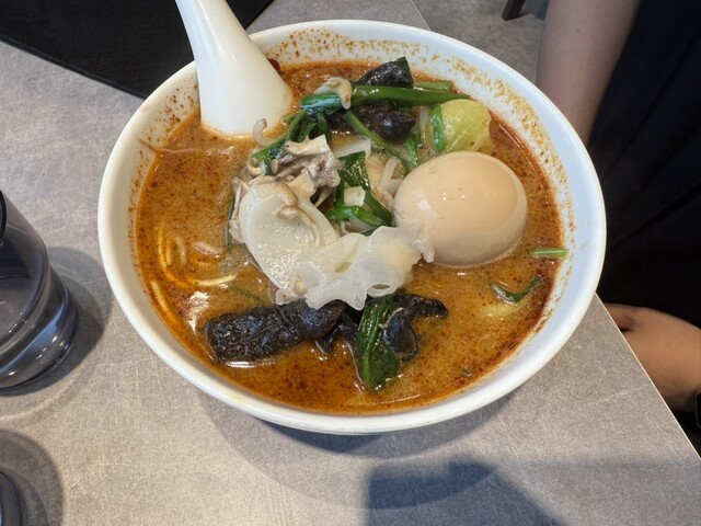 さて、実食した感想としては、麻辣湯ってカレーの味がする・・・?数種類の薬膳スパイスを組み合わたスープということでしたが、カレーの風味が強いことに驚きでした。辛味はどうかというと、4辛をチョイスしましたが、全然辛いとは感じず、少々物足りなかったのが少し残念。卓上の調味料で多少辛みを強化しましたが、これなら5辛以上も大丈夫かな〜と...。