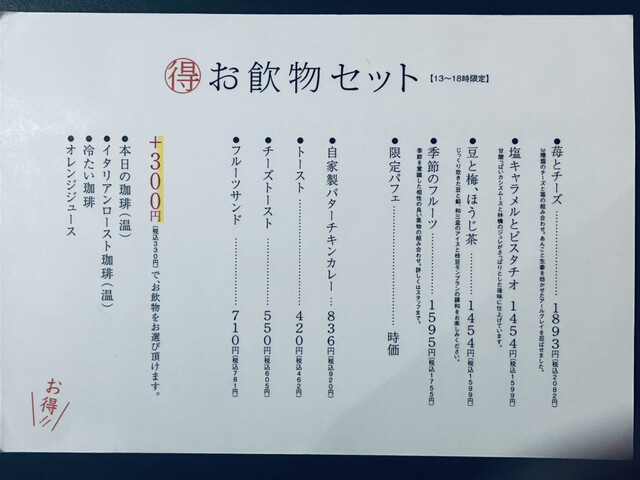 最新の情報とは異なる可能性がありますので、お店の方にご確認ください。詳しくはこちら