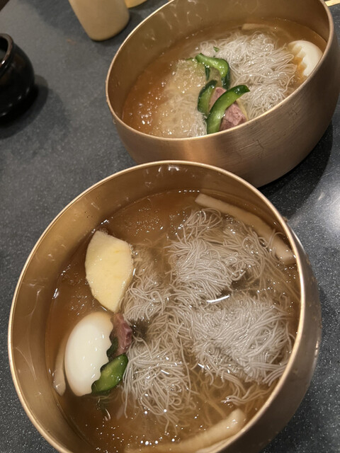 〆に冷麺を注文。持ってきてすぐに食べやすい長さに切ってくれたので、写真は映えてない笑。細めの麺の食感が最高。ダシも品良いお味