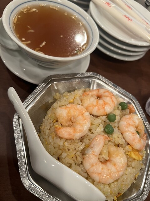 メニューに写真がなく、周りのお客さんのテーブルをチラチラ見ながら、エビチャーハン、八宝菜、ハルマキをチョイス