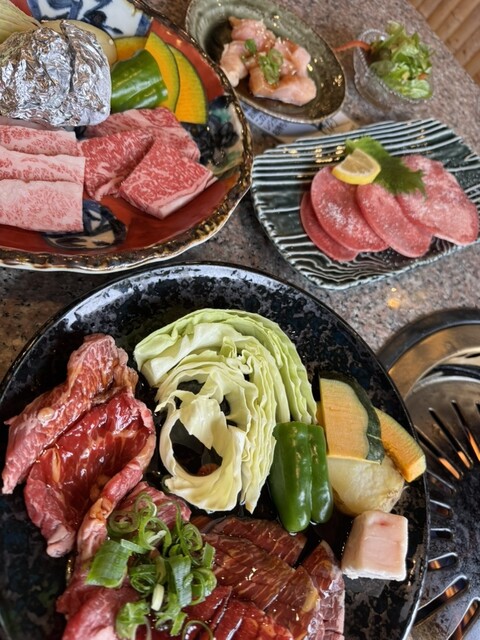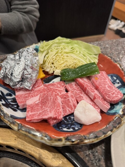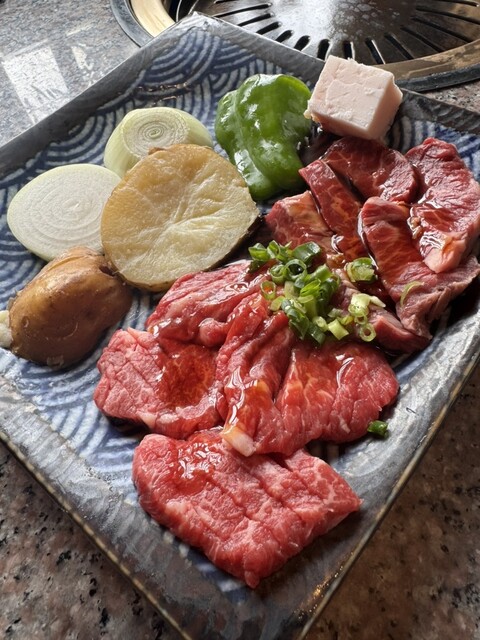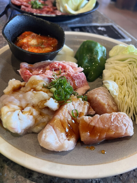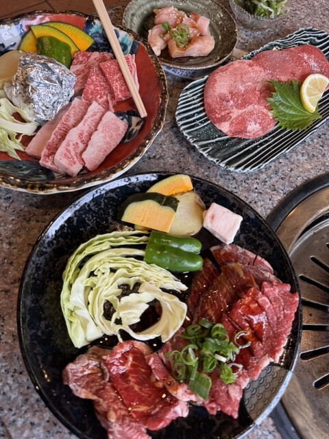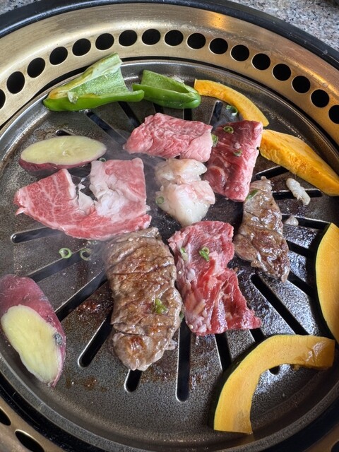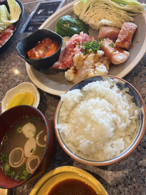 塩タンから焼いていきハラミ、カルビと野菜を焼いてご飯味噌汁も付いて美味しく頂きました♪