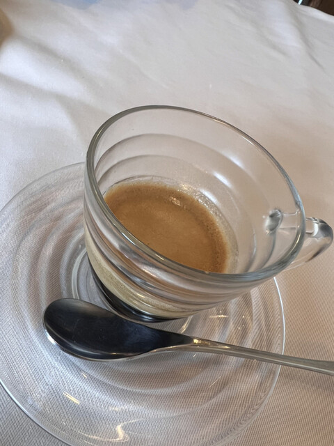 食前酒は運転があるのでオレンジJで冷菜スープはスイカで、前菜は7種カルパッチョ、長崎産ブリスモークとキノコパスタと広島産牡蠣パスタ、水牛のモッツァレラチーズ白トリフ添え、長崎産イサキのグリルと薩摩黒毛和牛モモ肉薪焼タリアータ、デザートとエスプレッソコーヒー☕️を美味しく頂き大満足です