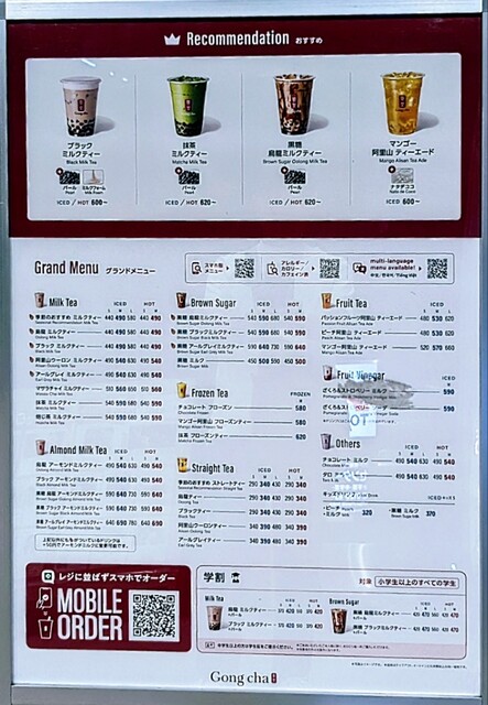 10月中旬と本来なら秋深まる季節ですがまだ半袖でもOKな陽気。買物も終わり飲物が欲しくなったので約3ヶ月ぶりに妻と長男の3人で21時閉店間際に来店。3人とも黒糖烏龍ミルクティーを注文するがなんと!烏龍茶が売切れでした。夏でもないのにやっぱりゴンチャは人気ありますね!!