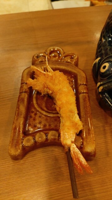 GW中のお昼にお邪魔しました。GW中はビジネス街は意外と人出が少ない穴場ではないか?と推測していましたが、いやいや既に予約で一杯とのことだったので、事前予約しておいてよかったです。ランチメニューのあい串(12本)1,800円を頂きました。今まで大阪には出張などで40回以上も行き、期間は延べ6か月以上も滞在しました。その際に、串カツもたくさん食べました。何度か食べたということもあるのと揚げ物は胃にもたれ、味も単調で同じ感じが続くということもあり、大阪に行ってももう串カツは食べる気はしていませんでした。そこまで串カツにはワクワク感を持っていなかった私ですが、たまたま人気で並んでいるのを見て今回予約して来ました。