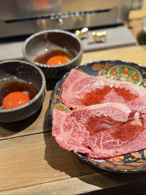 ロースの焼きすきは卵と絡めることで旨みが際立つ。