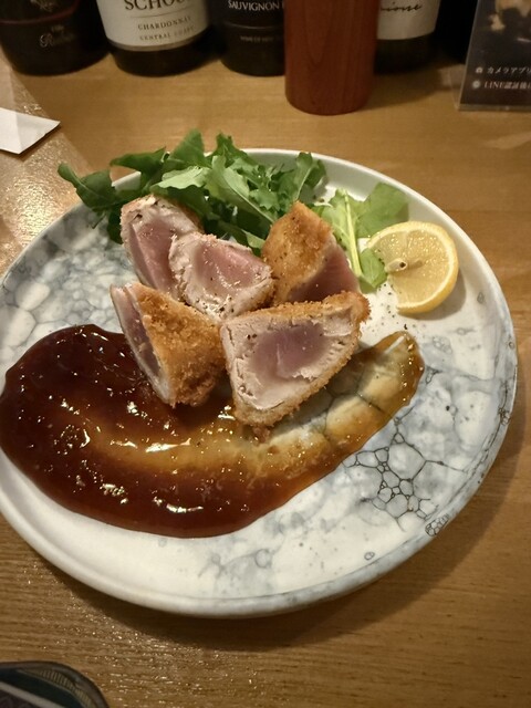 山椒のソースをつけて食べますが、このソースが美味しい。揚げ加減も絶妙で中心はまだレアで柔らかい食感。