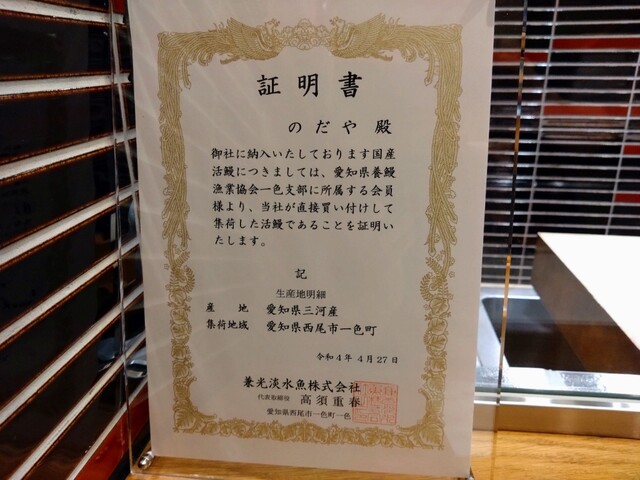 大変満足出来ました。次回は是非とも天然うなぎをいただきに再訪したいと思います。"