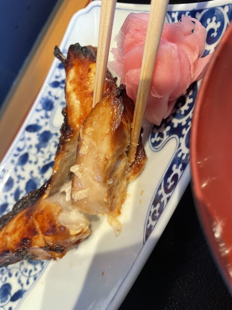 熱々に焼き上がったアコウダイはホクホクの肉厚、みりんの味付けはソフト、魚本来の味を損なうことないレベルでこれは物凄く美味しいですね。ただ小鉢類は緑のものがなく見栄えが悪いです。脂がのった魚は焼き魚には珍しくガリが添えてます。ただこれ口直しに結構良かった。