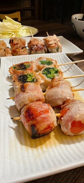 ・プチトマト巻き串(230円)は中から甘酸っぱいトマトが弾けて、さっぱり感が印象的。
