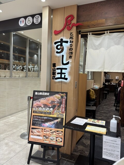 ランチはきときと市場内のすし玉さんへ。13:15頃到着して約30分の待ちで着席出来ました。