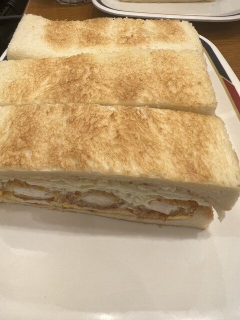 エビフライサンドと、名古屋こうちん卵サンドを頂きました。
