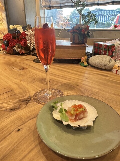 苺のエルターフラワーのノンアルコールスパークリングで乾杯
