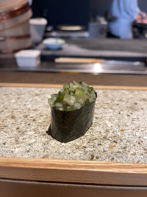 カウンター席でおまかせ握りを堪能しました。どのネタもそれぞれ工夫されていて美味しく全てにおいて大満足です。トロたくのおはぎやどんぐりに入ったお味噌汁など見ていて楽しいのも良かったです。