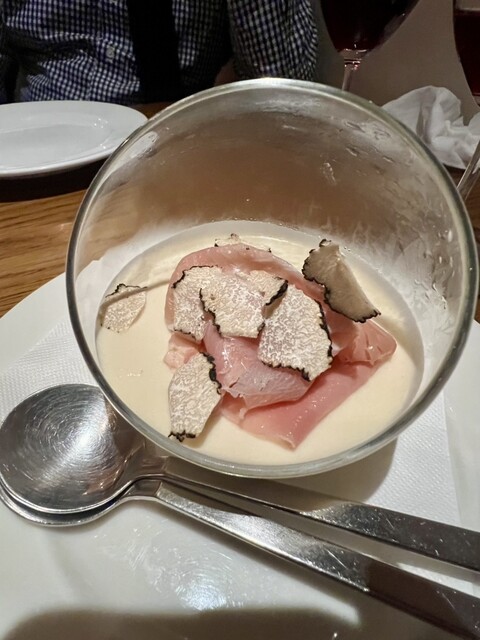 •根セロリのババロア 生ハムと黒トリュフ添え:香りと食感のバランスが絶妙で、一皿目から期待が高まる逸品。
