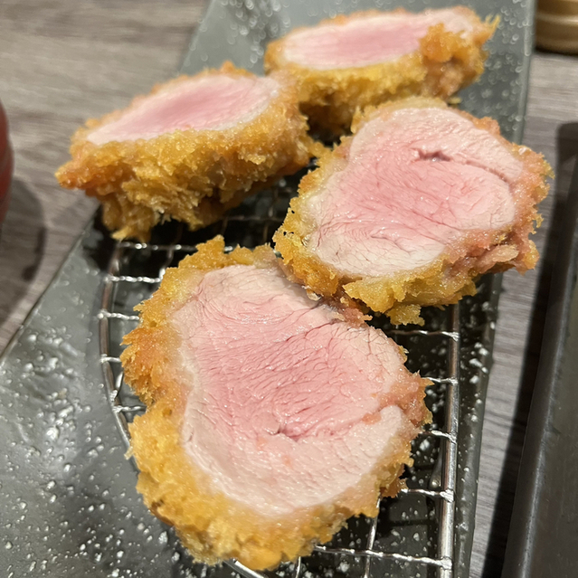 肉は脂身の甘みがありつつ、赤身の旨みがガツンときます。しっとりとして柔らかく、ザクザクの衣とのコントラストがええ感じ。