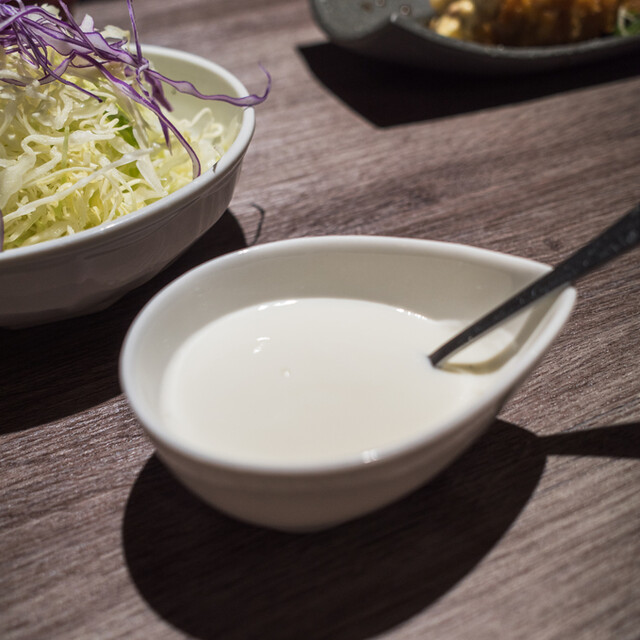 塩で食べるのもいいが、個人的には特に辛子ソースが好きで、辛子の辛味が絶妙の甘辛ソースがご飯との相性が抜群でご飯が止まらない。