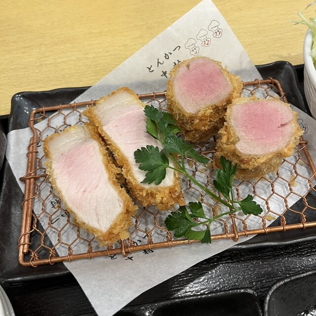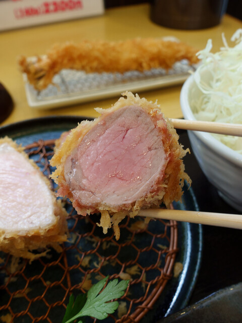 サクサクの衣の中にジューシーな肉が!!ロースは脂がとろけるような感覚で適度な甘みがあり、赤身は歯切れのよい肉質でとても食べやすい!ヘレは脂がない分あっさりと肉の旨みが存分に楽しめて最高!!揚げが上手すぎて毎度感動です!!