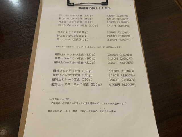 特上リブロースかつ定食 220g 3800円