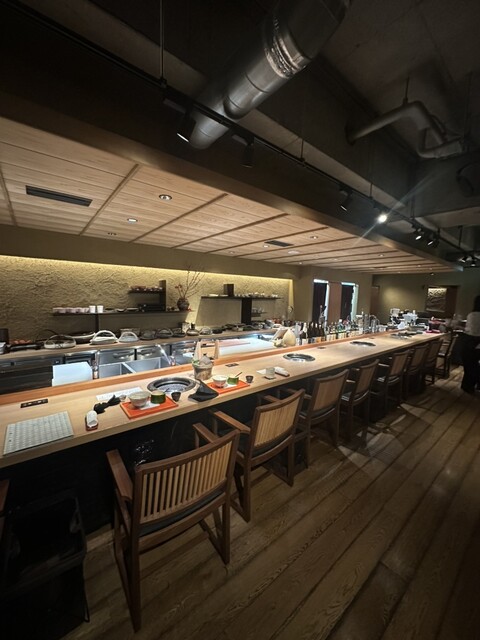 カウンターに座りました。目の前でお肉をカットしてくれたり、ライブ感のある高級焼肉店!個室もあり。