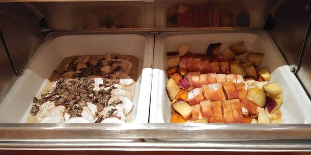 豚肉や鶏肉料理、揚げ物、中華、カレー2種類と幅広く用意されていました。
