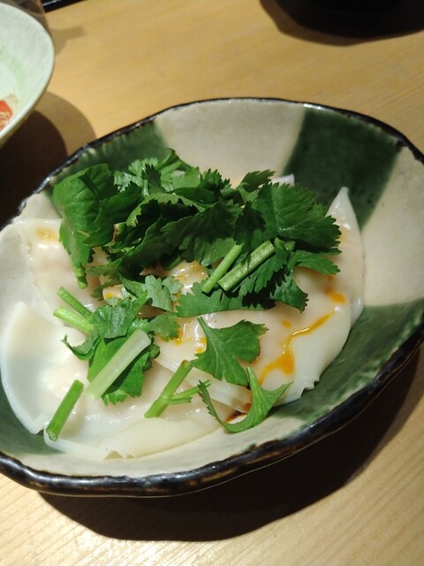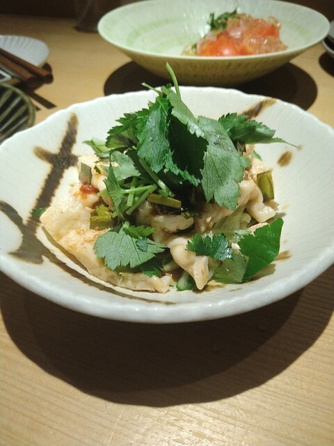 鶏もものたたきは所謂硬くてコリコリしている感じじゃなく、しっとり弾力はあるが硬くなくて初めての食感。