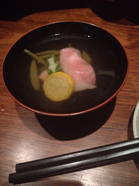 写真撮り忘れたけど、オリーブ牛の刺身からスタート!鰻料理やズッキーニの西京焼き、鴨の湯葉真薯とつづく。
