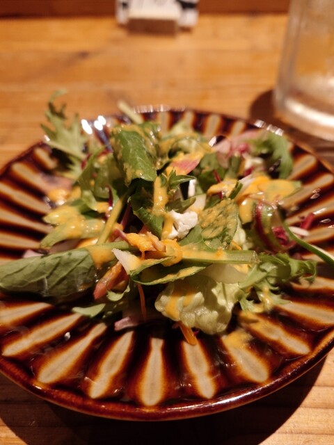 途中、お口直しにとサラダくるけど、この自家製ドレッシングが好み過ぎて無理やり購入した事もある逸品。