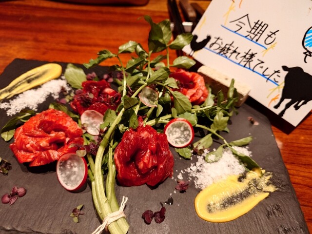 特徴としてはオリーブ牛の生肉が食べれる生肉と薪焼き肉が食べれるお店。