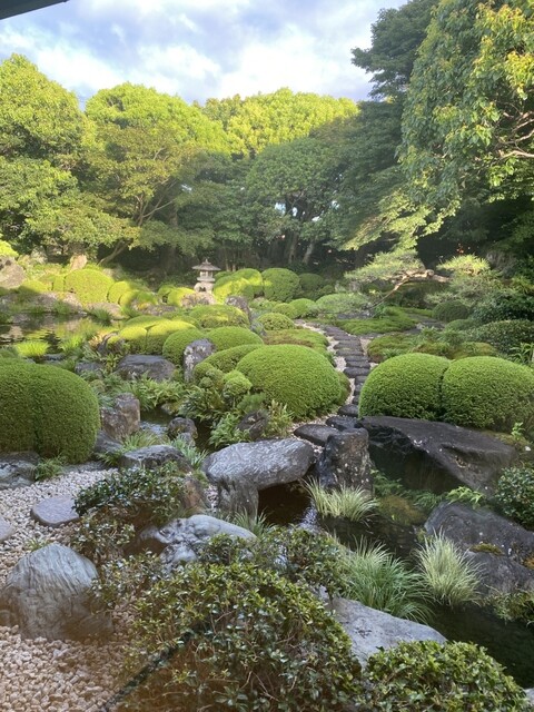 美しい日本庭園と美味しい松坂牛の網焼き。