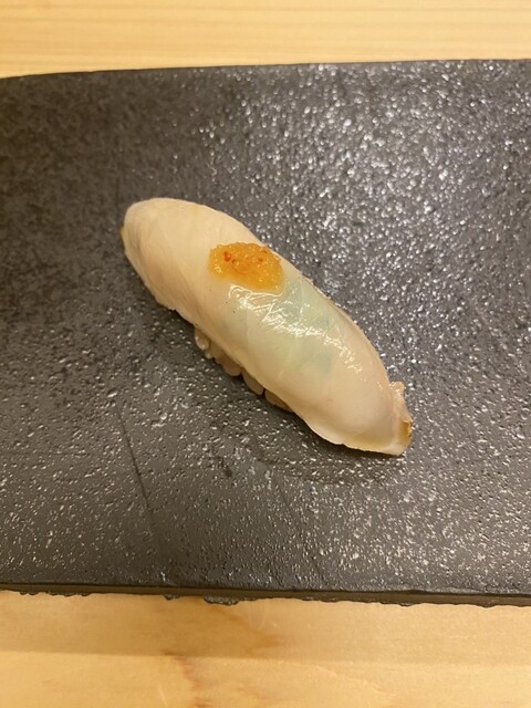 駅から、少し離れた閑静な住居街に、上品な門構え、期待を膨らませて、いざ入店。L字型カウンターで、我々を含め4組で、21時から一斉スタートでした。