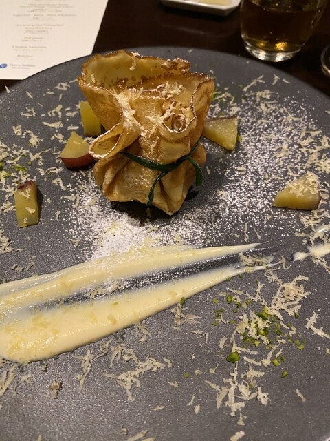 吉野シェフは、東京との掛け持ちで忙しい方だと思いますが、我々の記念の食事と言う考慮で、自ら腕を奮ってくださりました。メニューは、地元産・季節のものを用いて、カリフラワームース、甘エビ、鯖のへシコ、帆立のポアレ、栗のスープ、阿波尾鶏のテリーヌ、鮟鱇ベーコン巻、若狭牛の塩釜焼き、洋梨のグラニテ、マロンのオモニエール、プティフール等でした。どれをとっても、美しく、美味しく、フレンチを堪能できました。ありがとうございました。また、こんな機会が、、、と期待しています。