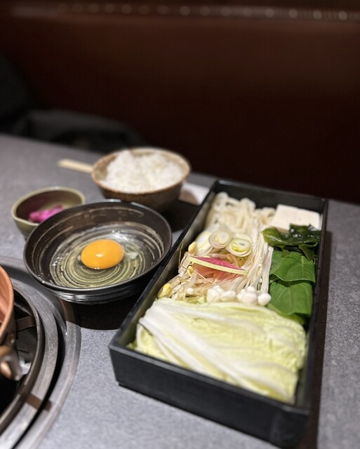 すき焼きは卵黄と