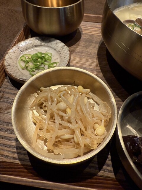 副菜のキムチ、ナムル、キクラゲもうどんと一緒にいただきました。