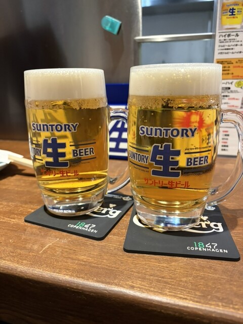生ビールはサントリー。グラスもキンキンで、鉄板料理との相性は言うまでもありません。南森町でワイワイ飲むなら間違いなく候補に入るお店です。