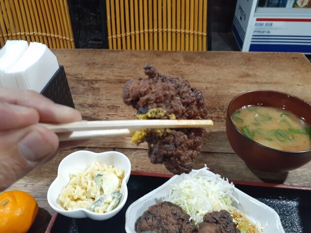 続いて唐揚げをいただきます。こちらはカリッとした衣に柔らかくジューシーな美味しい唐揚げに仕上がっています。炭火焼と食感が異なり良いですね!