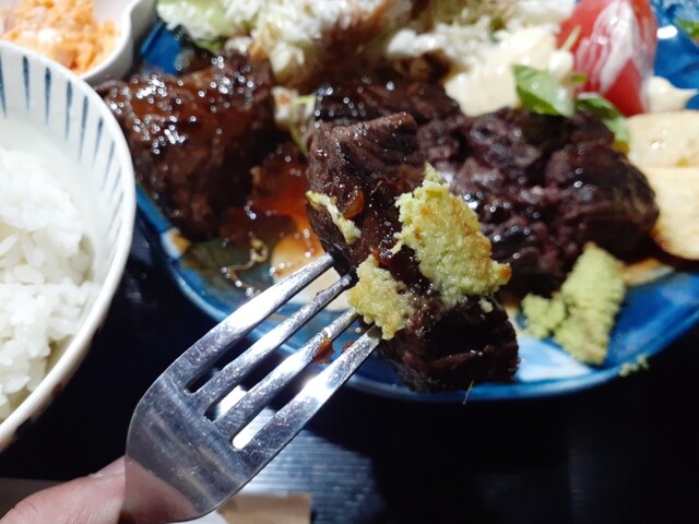 黒毛和牛のステーキを注文しようと思っていたのですが、マスターから、前回ハンバーグで食べた赤牛の『カイノミ』のステーキがあるということなので、そちらをお願いしました。