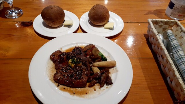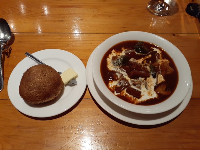 メインの鶏料理でもあるオレンジ煮は酸味の聞いたオレンジと柔らかい鶏肉がベストマッチ!残ったソースはパンにソースで掬いとって一滴残らず完食。