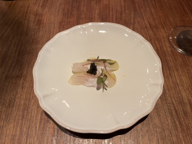 最初のカルパッチョも刺身がもっちりしてて上にはキャビア。