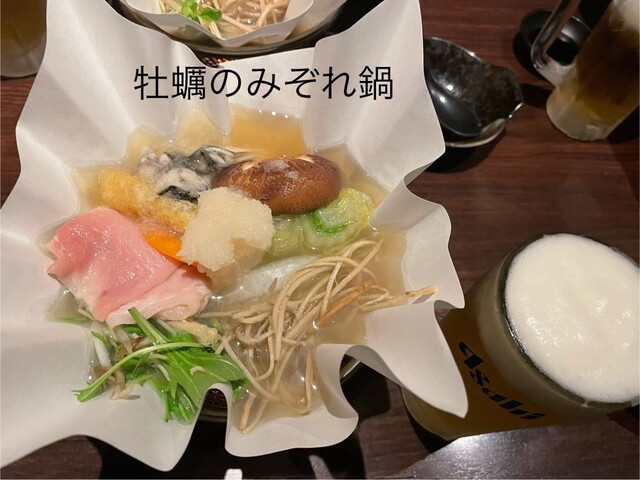 店の前は車で何度も通っていたので気になっていました。昼時でも店のPは何時もいっぱいで、日曜日に歩いて初伺い!牡蠣のゆき鍋セット(¥3500-)を注文しました