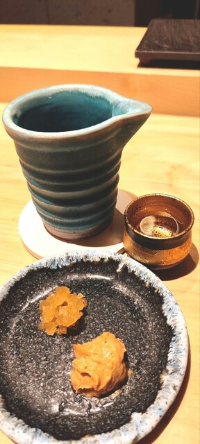 おすすめは、目の前で豪快に炙り上げるカツオのたたき。壱岐のまろやかな塩、またはポン酢でいただく一皿は、香ばしさと旨味が際立ち、特に壱岐の塩との相性は格別です。また、あん肝ソースに奈良漬けを添えた料理を辛口の日本酒と合わせれば、まさに至福のひととき。おすすめの銘柄は岐阜の「三千盛」。日本酒には特に力を入れており、全国から厳選した銘柄が揃うほか、好みの猪口を選べる粋なサービスも魅力です。