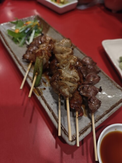 (ここでようやく「焼き鳥の盛り合わせ」など、"前菜"を数種類頼む)