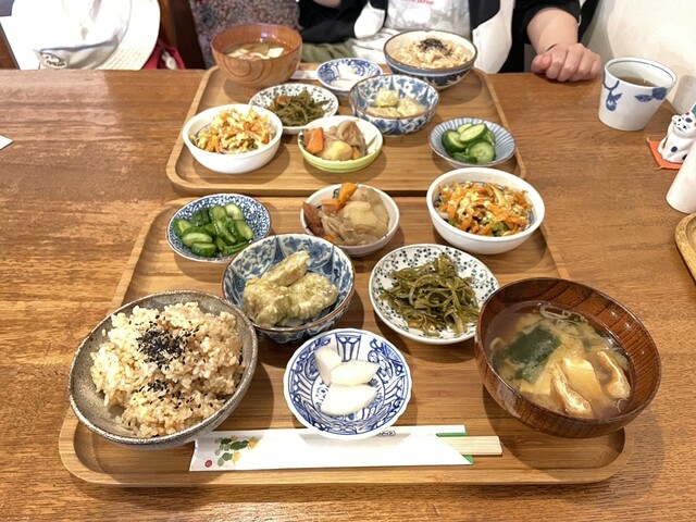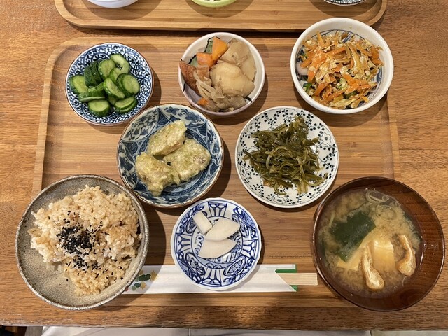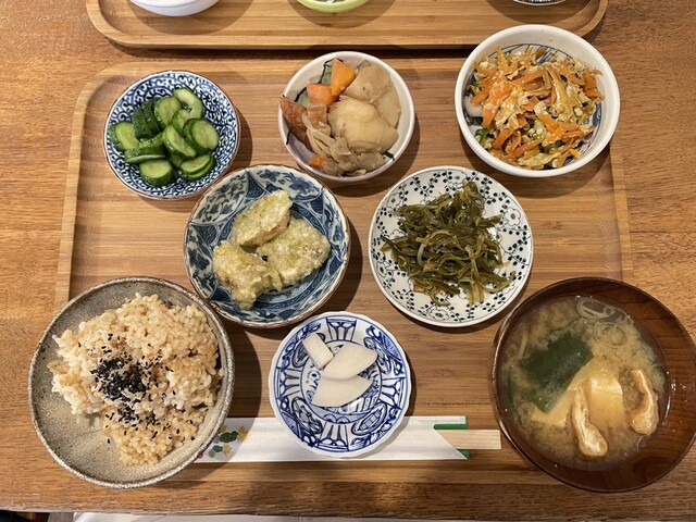 定食のご飯は全て玄米で、おかずのお皿が