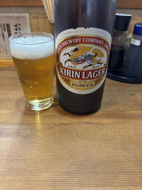 まずは、税込400円の瓶ビールの大瓶で乾杯❤️